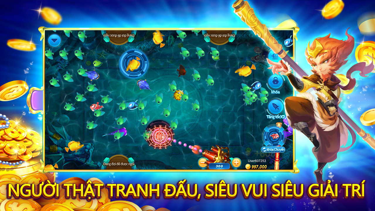 3A Trải nghiệm chất lượng hình ảnh giống phim điện ảnh 3A Nâng cấp hoàn toàn chất lượng hình ảnh,định nghĩa lại lần nữa chất lượng trò chơi bắn cá,thưởng thức chất lượng hình ảnh với độ phân giải cao như cảm giác trong phim Lối chơi mới- Ngư trường đặc sắc Cách chơi siêu mới thú vị gây nghiện, nâng cấp cổ vật, mở đầu một loạt các trò chơi bắt quái vật và trải nghiệm thêm nhiều niềm vui đột phá, lãnh hội ngư trường biển sâu đặc sắc Nâng cấp thần thú Tập kích thần bí Những cuộc công kích bất ngờ của các loài cá thần bí những vị thần thú cổ đại, tồn tại nhiều cơ hội cùng với mạo hiểm. Truy đuổi theo những con rồng cổ đại, cướp kho báu dưới biển sâu, pháo đạn ngàn lần, trở thành tỷ phú trong vài giây. Phúc lợi vô vàn Quà to gửi tặng Đăng nhập tặng ngay vô vàn phúc lợi, nâng cấp tặng VIP, người dùng mới tặng thưởng,hàng trăm triệu lợi ích thật tuyệt vời, để bạn xưng bá ngư trường và đạt đến đỉnh cao.